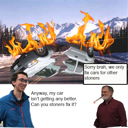 Background: While I was flying up to Alaska from California, Tristan sent me a message saying that his car broke
