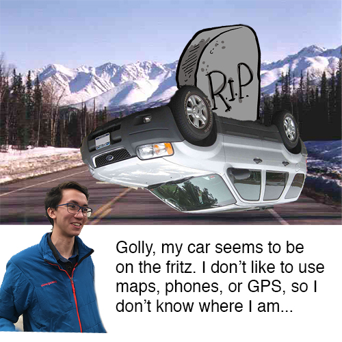 Background: While I was flying up to Alaska from California, Tristan sent me a message saying that his car broke